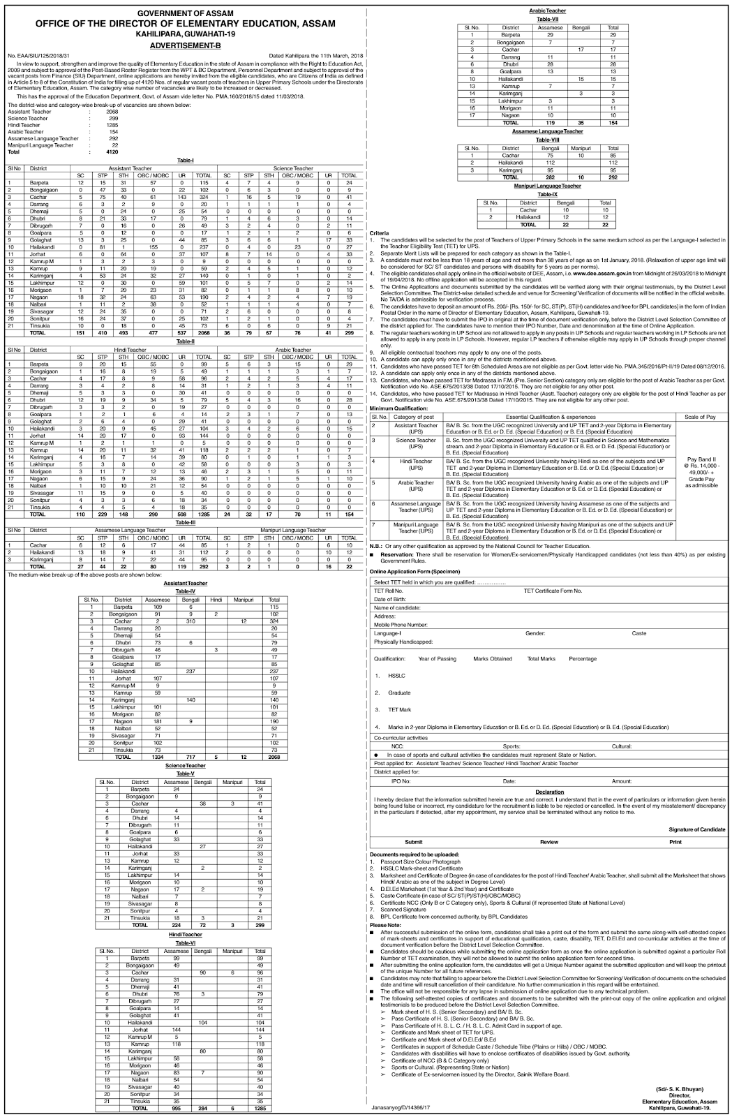 7. The interested candidates who have not yet applied for the regular posts of teachers of LP and UP Schools against the said advertisements may apply online through the official website of the DEE, Assam i.e. www.dee.assam.gov.in which will be open again from the 30th October, 2018 till the midnight of 21st November, 2018.